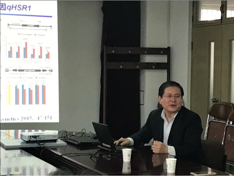 李新海副所长深入解读了十九大报告中明确的新时期“三农”工作方针,分析了新形势下农业科学技术发展的改革方向和重点任务。通过对比发达国家种业形势、科技创新体系、国际作物种业科技发展趋势,剖析了我国当前农业发展面临的严峻形势和挑战。李新海副所长对育种中心的工作表示了肯定,同时对中心提出两点要求:一是要加强科研的创新性,加强基础研究工作,争取在重点研究领域取得重大研究成果;二是要加强科研的应用性,加大合作力度,积极响应国家“一带一路”倡议,不断促进与其他机构,企业的合作,努力形成互联互通,推进科技成果转化。李新海副所长强调,作为农业科技研究者,大家要正确面对现状与差距,敢于迎接挑战,敢于改革创新,敢于攻坚克难。大家要撸起袖子加油干,一张蓝图绘到底。