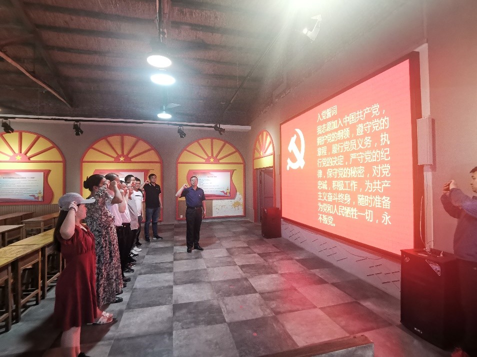 参加活动的党员同志一起在小镇重温入党誓词,感悟初心;支部毛龙书记结合近期的延安学习内容、《习近平的七年知青岁月》给参加活动同志上党课,大家谈体会,谈东营发展。