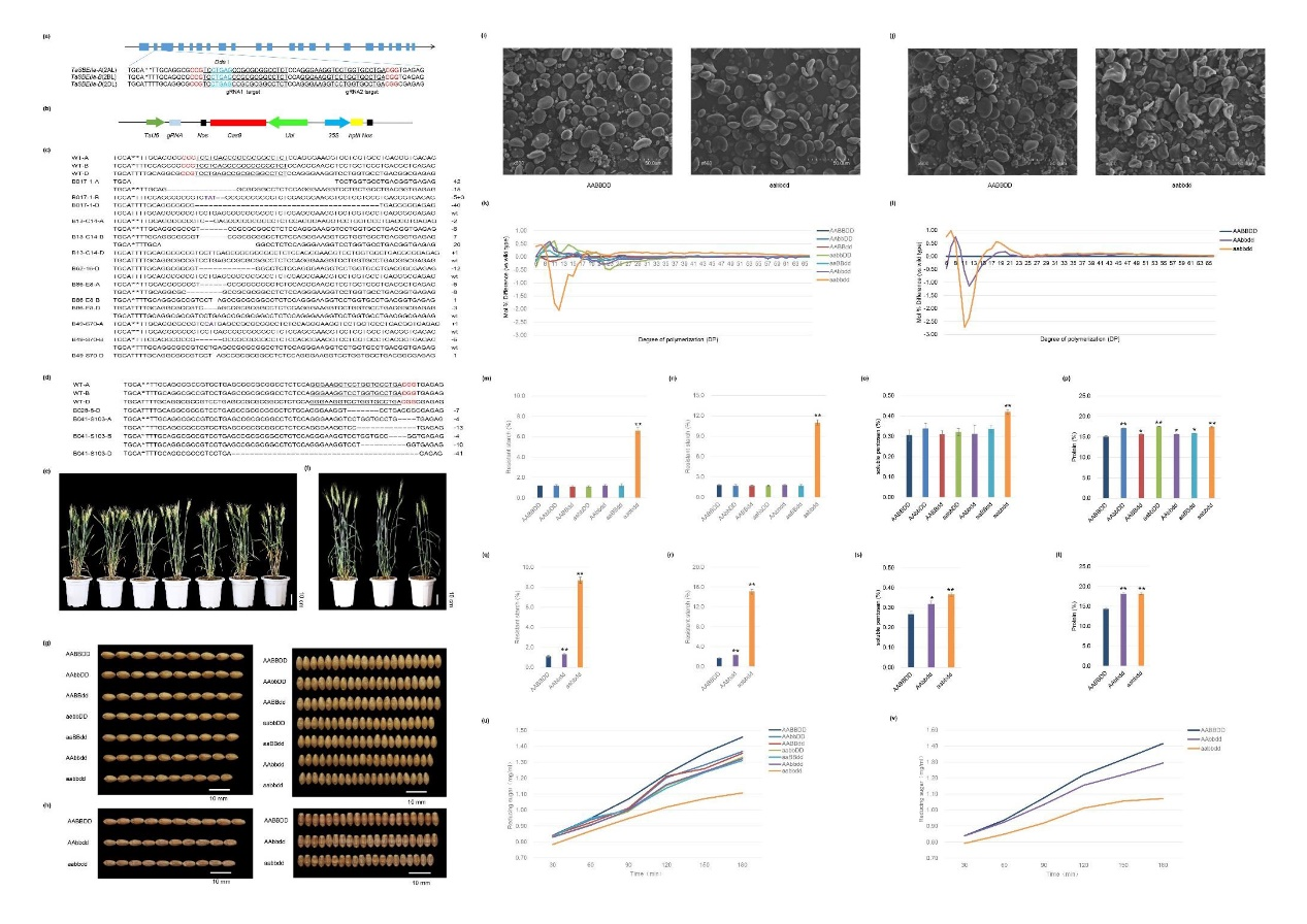 CRISPR/Cas9, as a simple, versatile, robust and cost-effective system for genome manipulation, has recently become the widely used tool for generation of sequence-specific targeted mutagenesis for both functional genomics and crop improvement. The hexaploid nature of common wheat makes generation of targeted mutagenesis in genes, which usually have three homoeologs located in each of the three subgenomes, very challenging. To date, increasing AC and RS contents in wheat through manipulating key genes involved in starch biosynthesis by genome editing has not been documented yet.