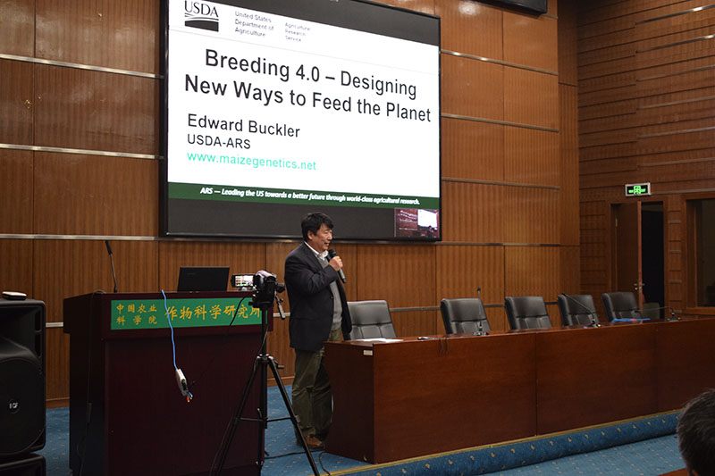 On October 28, 2018, Dr. Edward S. Buckler visited the Institute of Crop Sciences (ICS). He is an academician of American Academy of Sciences, a senior scientist in the field of plant genetics at United States Department of Agriculture - Agricultural Research Service (USDA-ARS), and an adjunct professor of plant breeding at Cornell University.