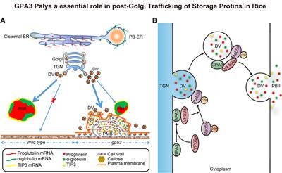 GPA3 plays an essential role in post-golgi trafficking of storage protins in rice