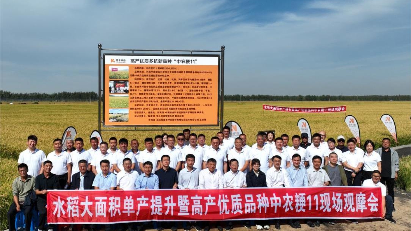 2024年9月9日,中国农业科学院作物科学研究所与北大荒垦丰种业联合主办的“水稻大面积单产提升暨高产优质新品种‘中农粳11’现场观摩会”在佳木斯桦川县举行。会议旨在推进科企深度对话,共鉴水稻科技创新成果,探讨种业支撑单产路径。中国农科院副院长、党组成员叶玉江,全国农技中心区试处高级农艺师张笑晴,北大荒农垦集团党委委员、副总经理姜庆海,作科所副所长王文生,黑龙江省农业农村厅种业处副处长孟令辉出席观摩会。会议由作科所成果转化与基地处处长肖永贵主持。