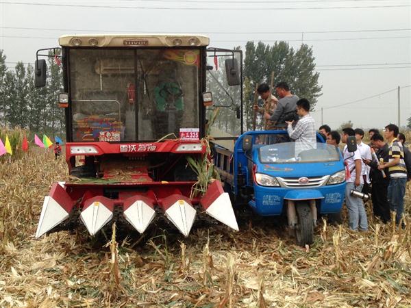 为了在黄淮海夏玉米区大面积推广籽粒收获技术,团队与河南天冠集团深入合作,在规模化生产的基础上,把籽粒直收、秸秆打捆、沼气应用、沼液沼渣还田结合在一起,探索循环农业。今年9月29日,在河南临颍天冠集团试验示范基地,8台联合收获机对6000亩玉米进行了籽粒收获和秸秆打捆再利用,为黄淮海夏玉米区籽粒规模化收获、秸秆处理起到了良好的示范带动作用。