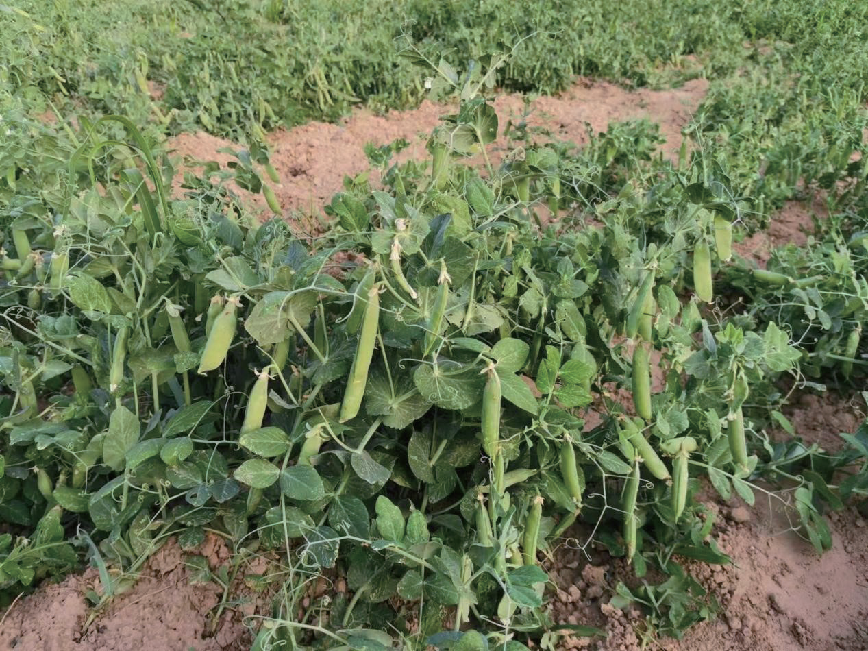 特征特性:干籽粒型豌豆品种。全生育期 79.6 天左右。株型矮生,株高 36.4 厘米,叶绿色,叶型普通,每株成荚 7 节,第一结荚位低,花白色。单株有效荚数 7.9 个,单荚粒数 5.1 个,平均荚长 7.96 厘米,荚宽 1.53 厘米,荚绿色,荚质硬荚,种皮绿色,子叶绿色,粒形扁球形,籽粒表面凹坑,干籽粒百粒重 24.30 克。粗蛋白含量 24.20%,粗淀粉含量 46.00%。高感白粉病、锈病。苗期耐冷性强,芽期耐盐性中等。