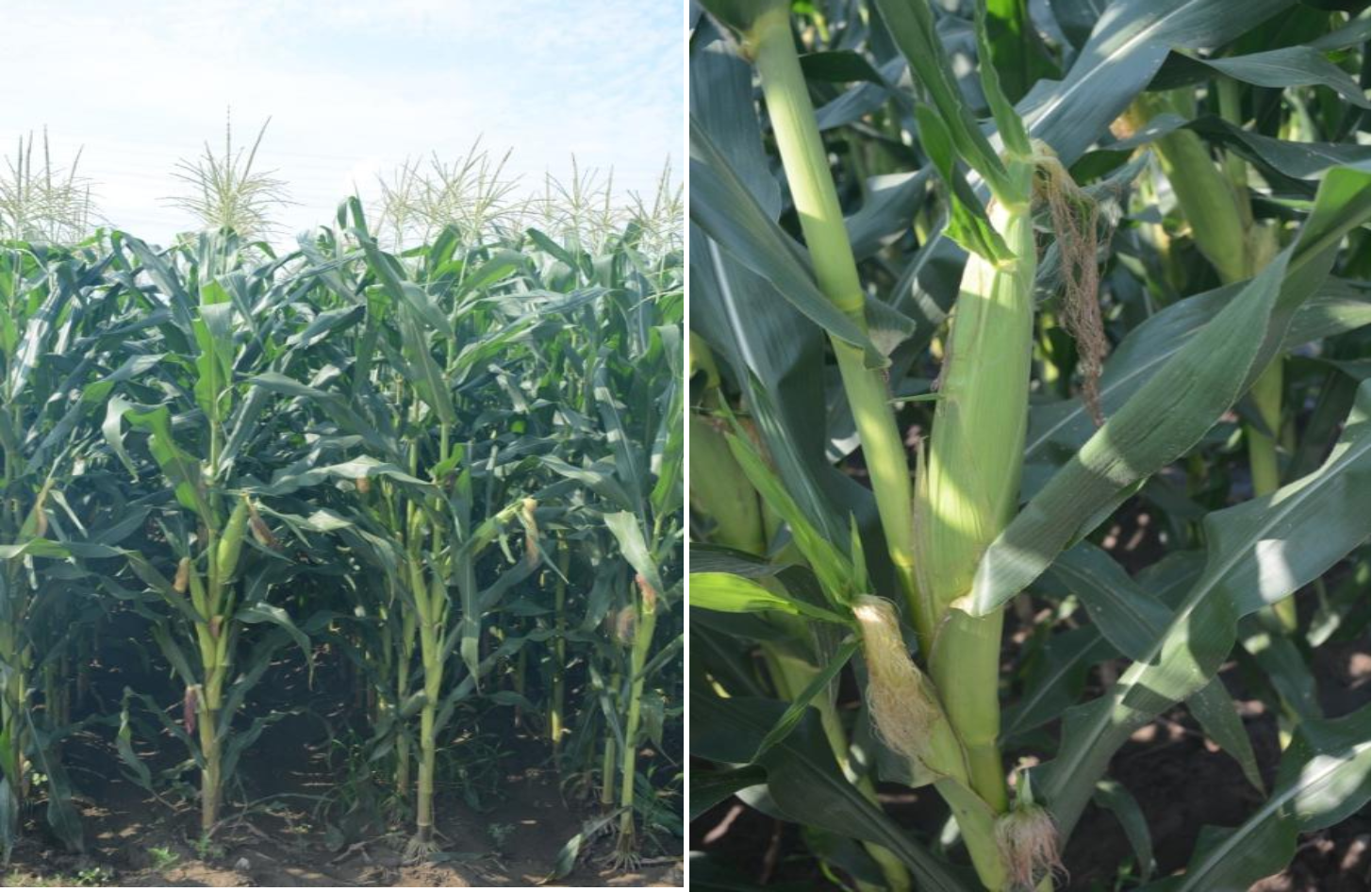 产量表现:黄淮海夏玉米组,2019 年生产试验平均亩产 696.6 千克,比对照郑单 958 增产 8.5%;国家玉米品种联合体试验东华北中晚熟春玉米组,2022 年生产试验平均亩产 839 千克,比对照增产 8.0%;国家玉米品种联合体试验西北春玉米组,2022 年生产试验平均亩产1025 千克,比对照增产 5.0%。