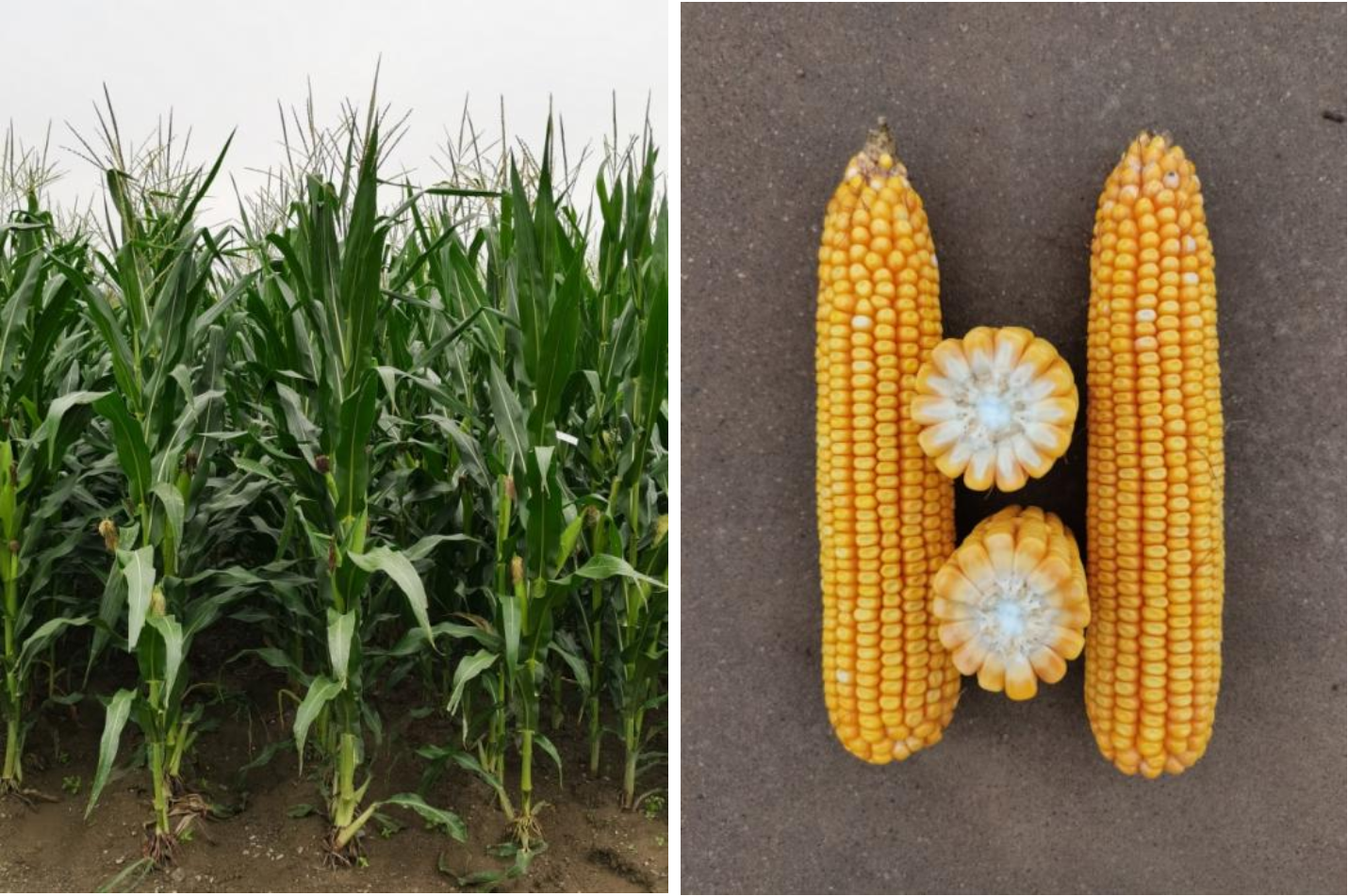 特征特性:黄淮海夏玉米组出苗至成熟 100.5 天,比对照郑单 958 早熟 1.5 天。株型紧凑,株高267 厘米,穗位高 107 厘米。果穗长筒型,穗长 17.2 厘米,穗行数 12~20 行,穗粗 4.9厘米,穗轴白色,籽粒黄色、半马齿,百粒重 31.5 克。高抗茎腐病,感穗腐病,抗小斑病,感弯孢叶斑病,高感瘤黑粉病,籽粒容重 767 克 / 升,粗蛋白含量 9.56%,粗脂肪含量 3.87%,粗淀粉含量 75.96%,赖氨酸含量 0.29%。东华北中晚熟春玉米组出苗至成熟 129.6 天,比对照早熟 0.4 天。株型紧凑,株高302 厘米,穗位高 129 厘米,成株叶片数 21 片。果穗长筒型,穗长 20.1 厘米,穗行数16~20 行,百粒重 37.4 克。中抗大斑病,中抗茎腐病,中抗穗腐病,感灰斑病,感丝黑穗病。西北春玉米组出苗至成熟 132.9 天,比对照晚熟 1.8 天。株型紧凑,株高 299 厘米,穗位高 132 厘米,成株叶片数 19 片。果穗筒型,穗长 18.5 厘米,穗行数 16~22 行,百粒重 34.9 克。感大斑病,中抗茎腐病,中抗穗腐病,感丝黑穗病。