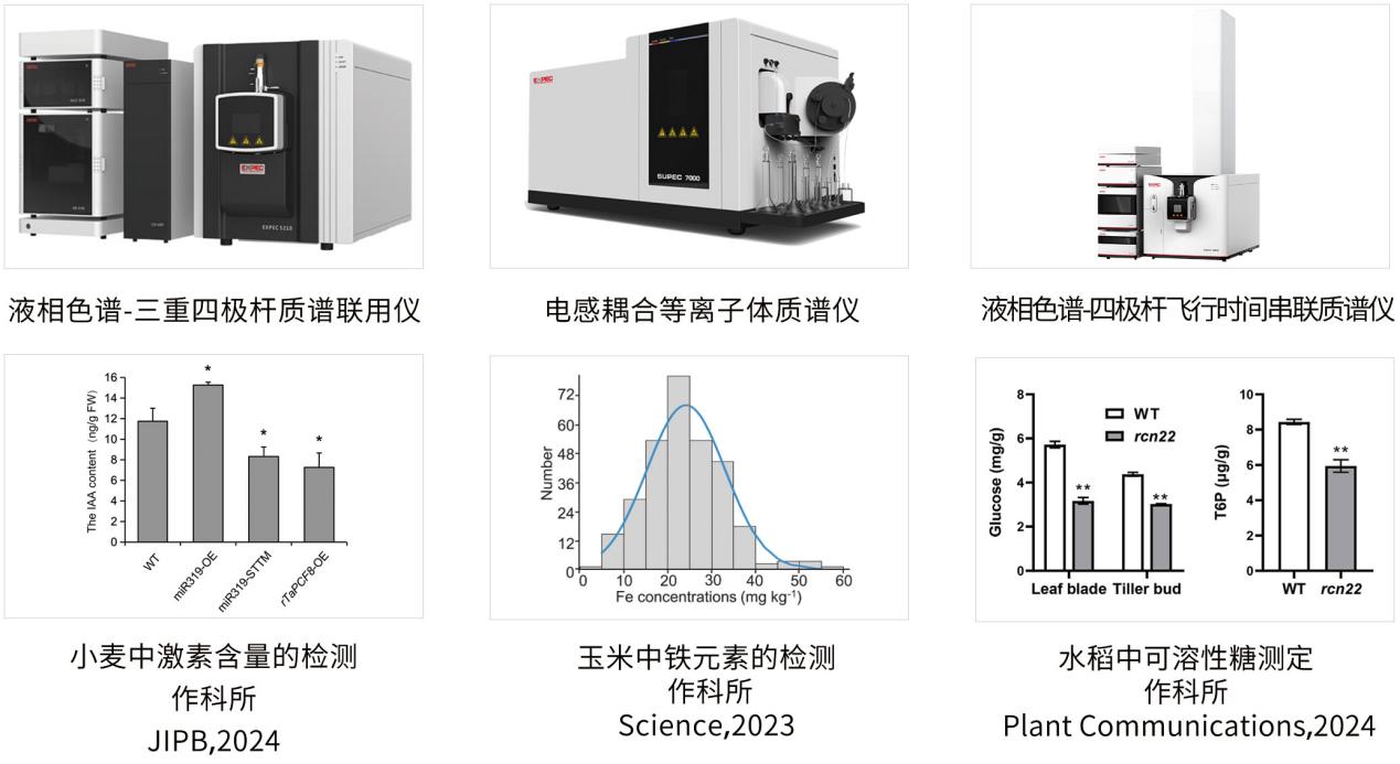 基于高效液相色谱串联三重四极杆质谱仪、高效液相色谱-四极杆飞行时间串联质谱仪、电感耦合等离子质谱仪、气相色谱串联三重四极杆质谱仪等仪器开展了激素类、可溶性糖类、黄酮类、脂肪酸类、挥发性代谢物类、农残类、维生素类、无机金属元素等分析服务。