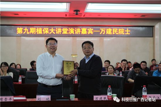 ▲万建民院士(右)在中国农业科学院植物保护研究所“植物保护大讲堂”作学术报告