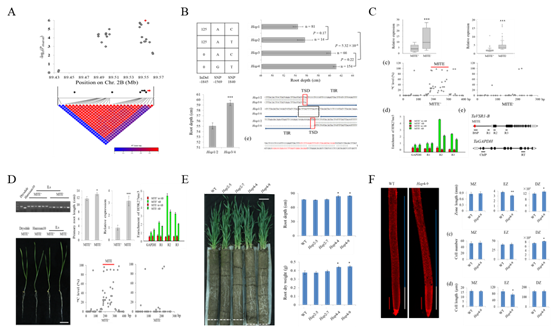 近日,中国农业科学院作物科学研究所小麦基因资源发掘与利用创新团队通过全基因组关联分析,发现小麦液泡分选受体基因TaVSR1-B启动子区转座子与孕穗期根深显著相关。