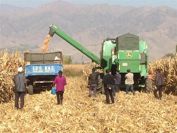 玉米机械籽粒直收现场