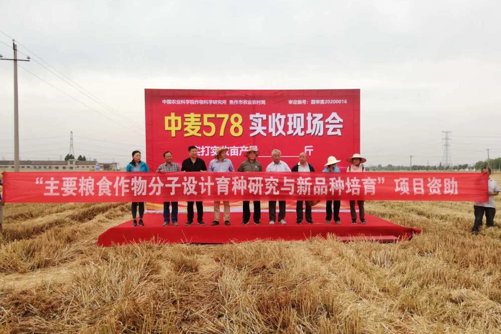 6月1日,作科所何中虎研究员带领的小麦品质研究与新品种选育创新团队选育的优质强筋小麦新品种“中麦578”位于焦作市修武县的高产示范田进行了现场实打验收,小麦平均亩产达到841.5公斤,创下黄淮麦区高产纪录。