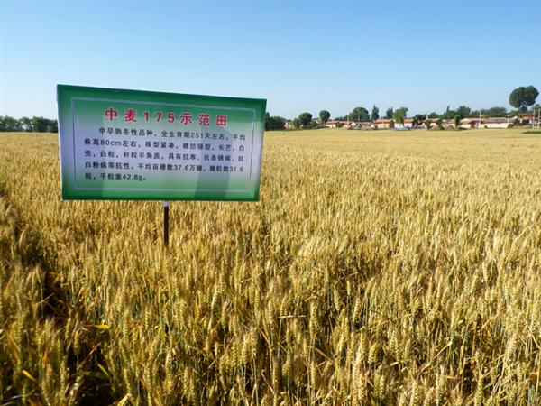 中麦175实现了高产潜力、水肥高效、优良面条品质、广适性与早熟性的良好结合,是水旱兼用型品种,分别通过国家北部冬麦区水地、国家黄淮旱肥地、北京市、山西省、河北省、青海省和甘肃省的品种审定,且已成为上述地区的主栽品种及北部冬麦区、北京市、山西省与河北省冀中北地区区试的对照品种。