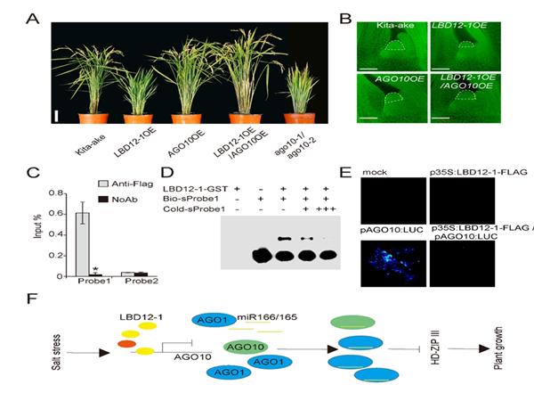 万建民院士团队研究发现,过量表达转录因子LBD12-1引起水稻株高降低并伴随叶片和花药发育异常。盐胁迫下LBD12-1表达上升,并直接结合在AGO10启动子上抑制其转录,从而阻碍茎尖分生组织的生长。该研究加深了对植物茎尖分生组织调控机制的理解,具有重要科学意义。