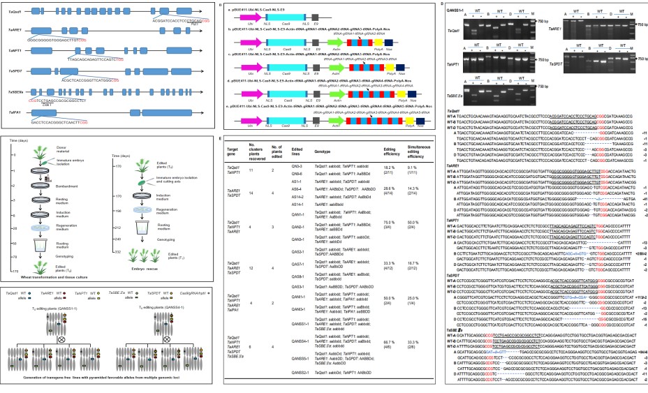 图:CRISPR/Cas9系统介导的小麦多基因编辑,获得聚合多个优良等位基因的小麦新种质
