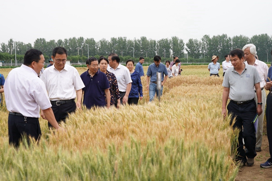 6月9日,中国农业科学院作物科学研究所举办“小麦藏粮于技计划优异抗逆种质资源田间展示暨研讨会”,展示了小麦基因资源发掘与利用创新团队筛选出的455份表型多样的抗旱耐热小麦种质,其中蕴藏着丰富的抗旱耐热基因资源,可供小麦育种家们按需选择利用。中国农科院党组书记张合成、副院长万建民院士,中国工程院刘旭院士、程顺和院士、康振生院士、胡培松院士,院办公室主任王晓举、科技管理局局长任天志、成果转化局局长王述民,作科所领导班子、“藏粮于技”项目组专家等领导和专家通过现场以及视频连线出席了会议。