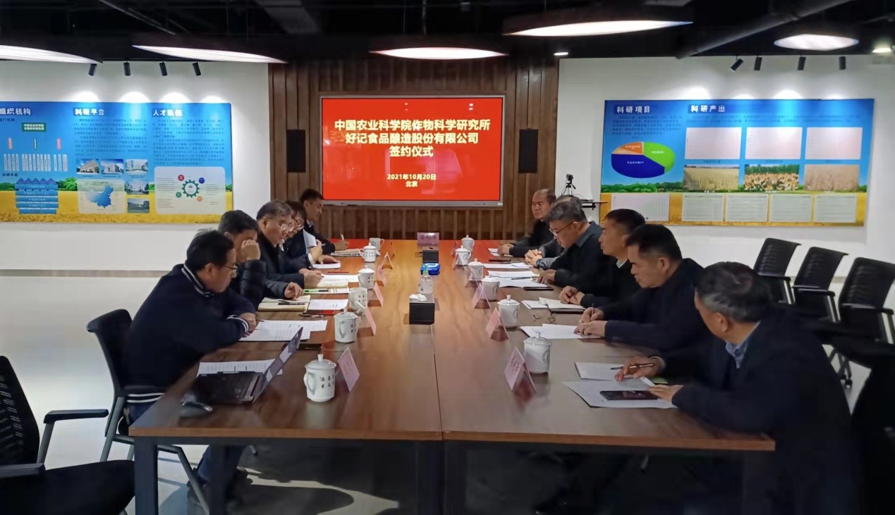 据好记公司总经理曹东旭介绍,好记拥有亚洲最大的有机酱油生产基地,所有产品均甄选东北优质绿色栽培大豆、小麦,并采用长白山优质水源通过原木桶酿造而成。此次与作科所合作,将持续从优质的原材料入手,为消费市场提供高品质产品,共同推动厨房食品的消费升级。好记位于吉林省延边朝鲜族自治州汪清县,是国家级贫困县、国家扶贫开发工作重点县,国家发展和改革委员会定点帮扶贫困县。闫之春副县长介绍了汪清县基本情况、农业发展定位与方向,并表示,汪清县以好记食品酿造股份有限公司等为龙头的企业始终能够准确把握新形势新要求,通过产业兴农、科技富农践行“十四五”规划,为乡村振兴工作打好基础。