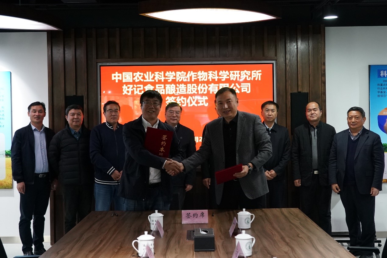10月20日,作科所与好记食品酿造股份有限公司(以下简称好记公司)签署“酱油专用大豆品种筛选、绿色栽培、产品检测与评价技术服务”合作协议。作科所副所长刘录祥、吉林省汪清县副县长闫之春、好记总经理曹东旭等领导、专家和企业代表出席签约仪式。