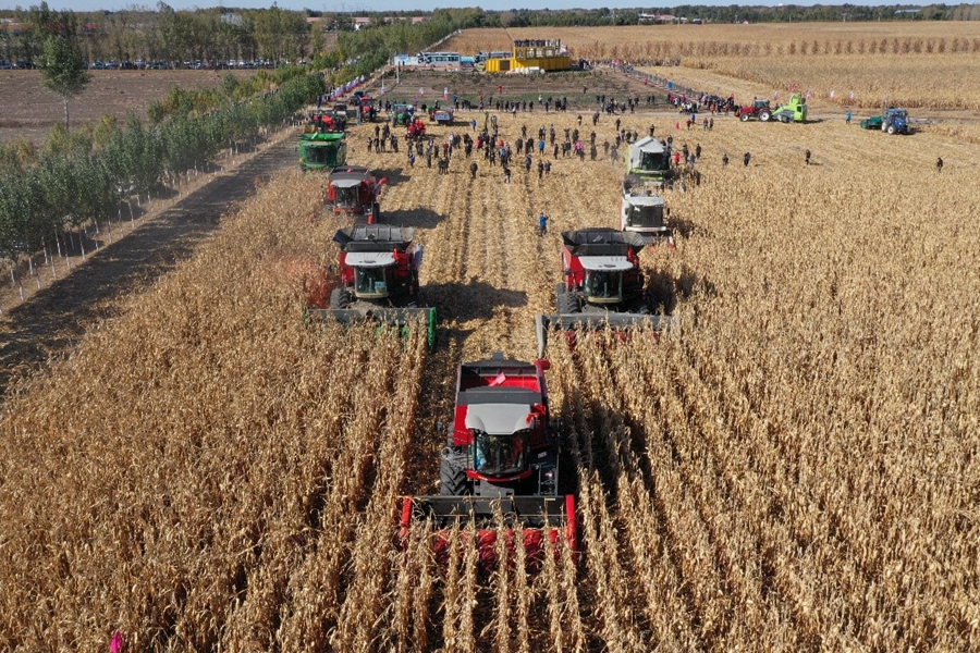 10月12至14日,在通辽市庆祝“农牧民丰收节、首届玉米收割节”暨“玉米机械粒收技术”现场观摩培训会系列活动上,由农业农村部玉米专家指导组测产,中国农业科学院作物科学研究所栽培生理创新团队位于科尔沁区钱家店镇20亩高产示范田亩产达到1234.88kg,创东北玉米机械粒收规模种植高产纪录;千亩示范田亩产超1000kg,较当地农户平均产量增加450kg以上。经农技部门测算,示范田亩均净收入1529.4元,较农户亩均增收918.9元,极大提升了通辽玉米产业竞争力,超额兑现了助力当地增产增收的承诺。