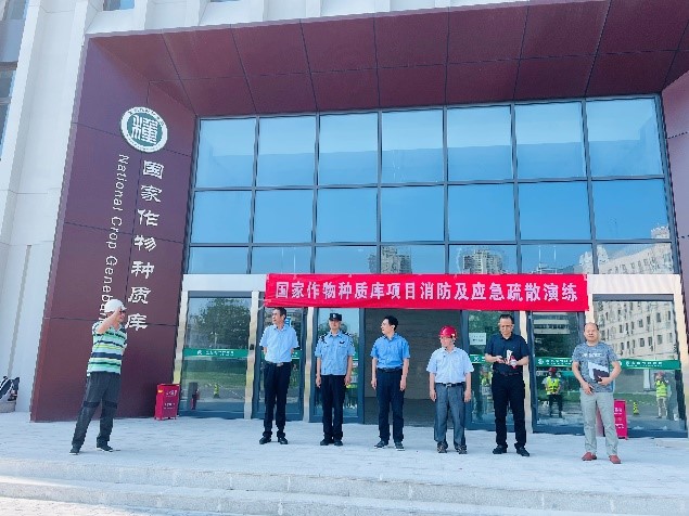 为贯彻落实院安全生产委员会(扩大)会议、建设施工单位安全生产专题会议要求,切实抓好国家作物种质库建设项目安全生产工作,提升现场突发事件迅速反应与应急处置能力,保障“七一”前后安全稳定,6月22日,中国农业科学院作物科学研究所组织开展了国家作物种质库建设项目消防及应急疏散演练活动。