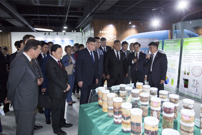 6月8日下午,吉尔吉斯斯坦总统热恩别科夫在中国驻吉大使肖清华陪同下率团访问中国农业科学院。中国农业农村部副部长屈冬玉、中国农业科学院院长唐华俊、副院长吴孔明等领导在中国农科院作物科学研究所科技展厅接见了热恩别科夫总统一行,作科所所长刘春明、党委书记孙好勤参加了接见。