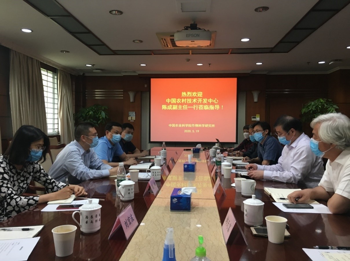 5月19日,中国农村技术开发中心陈成副主任一行到作物科学研究所,就国家重点研发计划“七大农作物育种专项”项目的实施进展情况进行调研。中国农村技术开发中心高技处处长葛毅强、项目专员朱华平和魏珣、作科所副所长刘录祥、周文彬、马有志等领导和专家陪同调研。