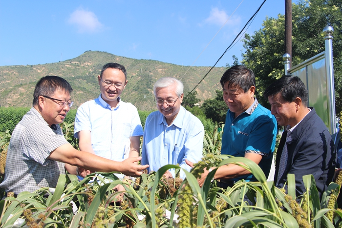 许智宏详细了解了由作科所刁现民研究员、郑军研究员、孟凡华副研究员等专家牵头的小黑麦、玉米、糜子谷子、鹰嘴豆、籽粒苋等特色作物种质资源引进异地鉴定与田间筛选试验研究进展,认真听取双方在科技合作、平台支撑、人才培养和党建交流等方面的相关汇报。