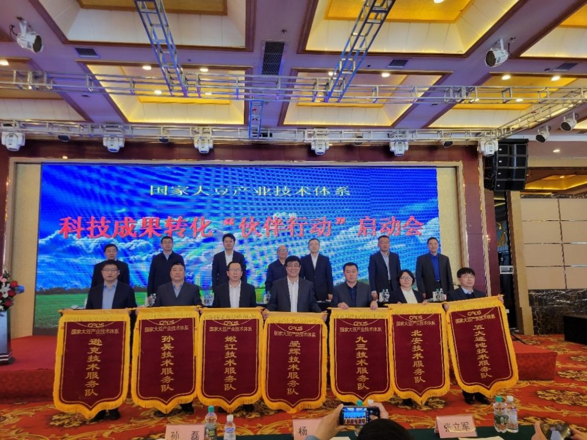 近日,中国农业科学院作物科学研究所牵头的国家大豆产业技术体系“科技成果转化‘伙伴行动’”在黑河市启动,“行动”旨在深度破解大豆产业“卡脖子”技术,打通科技成果转化应用通道,加快构建黑河大豆产业全产业链发展体系,助推大豆产业振兴发展,努力打好大豆种业翻身仗,进一步落实中央经济工作会议重要指示。黑龙江省农业农村厅副厅长庞海涛、黑河市委书记马里、市长李世峰、副市长张建国等领导,南京农业大学盖钧镒院士、国家大豆产业技术体系首席科学家韩天富等专家出席活动。