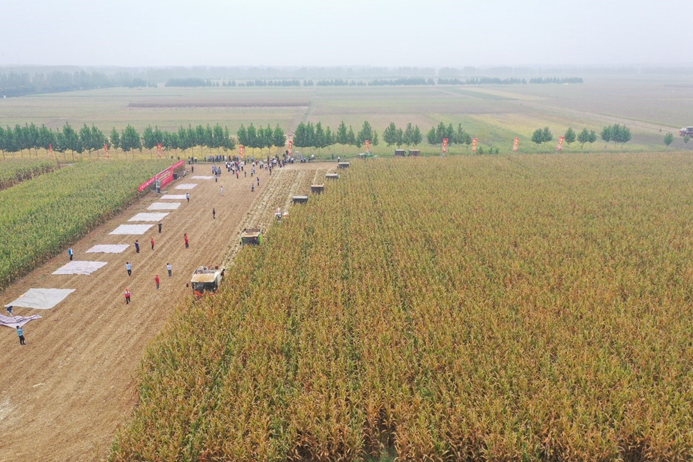 9月29日,2020年玉米籽粒低破碎机械化收获技术暨玉米密植高产技术示范现场会在河南漯河舞阳县16万亩高标准粮田项目区召开。现场会集中展示了近年来粒收品种筛选、密植高产栽培、粒收机械作业以及烘干仓储等方面的研究成果,进行了籽粒低破碎机收技术现场演示和实收测产。中国农业科学院作物科学研究所副所长刘录祥,以及河南省农业农村厅副厅长王俊忠,漯河市副市长乔彦强等领导出席活动。