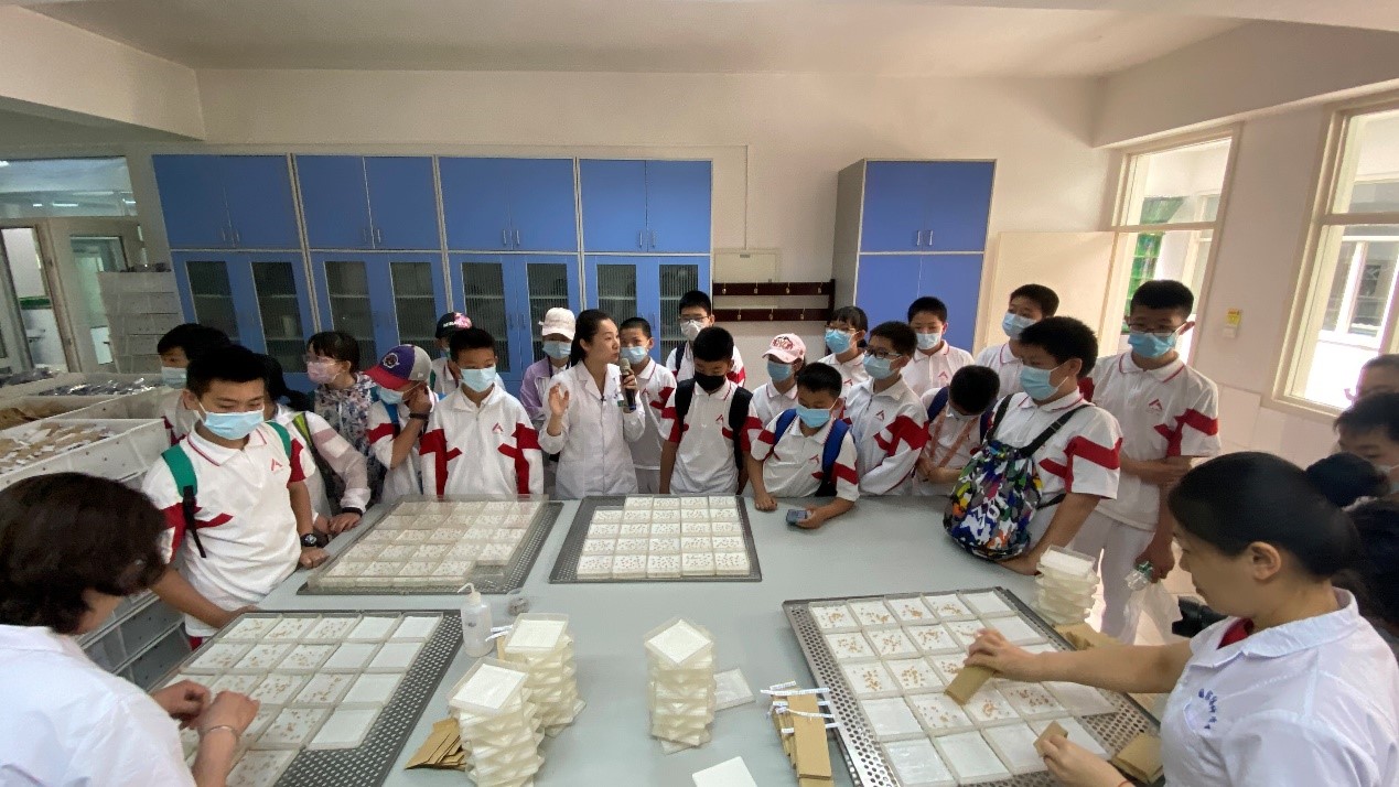 在国家作物种质库,种质资源专家给同学们普及了种质资源的概念和作用。从日常生活的所见着手,告诉同学们我国大力建设种质资源库的战略意义,以及通过科技手段,怎样把种质资源利用好、保存好。讲解专家将“发芽室”形象的比喻为资源登上“种子方舟”的资格审查室,介绍了种子萌发的相关知识,让同学们在此体会资源的生命力;将实验室”比作“种子方舟”的科技研发部,让同学们在此体会资源“长生不老”的奥秘,识别“种子中的短命鬼”、对低活力种子开展“种子急救”;将“干燥包装室”比作资源登上“种子方舟”的武装室,在此体会资源登舱前的准备工作,观察各类型的种子,了解物种多样性等知识点。
