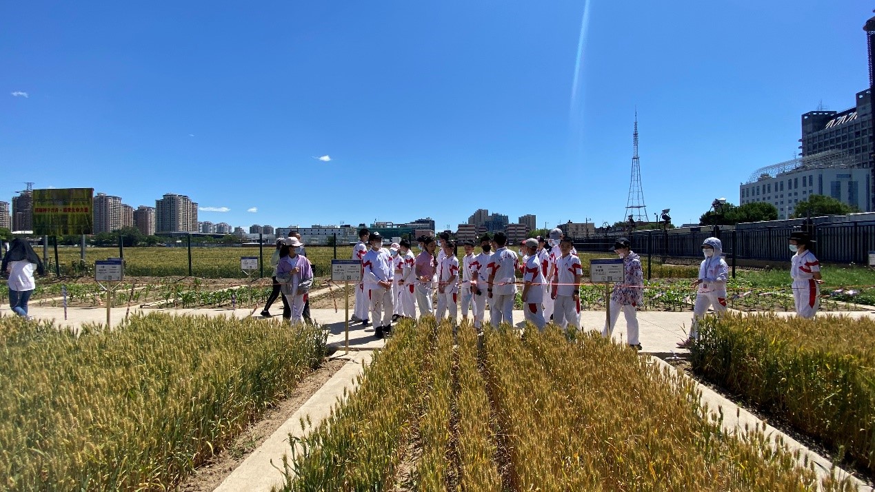 青青的禾苗,蓝蓝的天空,5月28日,中国农业科学院作物科学研究所国家作物种质库和科普基地里传来青少年的阵阵欢声笑语,这里,正在进行作科所“探秘种子方舟,感受生命力量”的农科开放日活动,来自中国人民大学附属中学的学生代表在这里体验了不一样的研修课程。走出校园,来到田间,这次特殊的研修课不仅让同学们学习到了作物种质资源相关的农业科学知识,更让他们体验到了劳动的辛苦、盘中餐的来之不易。