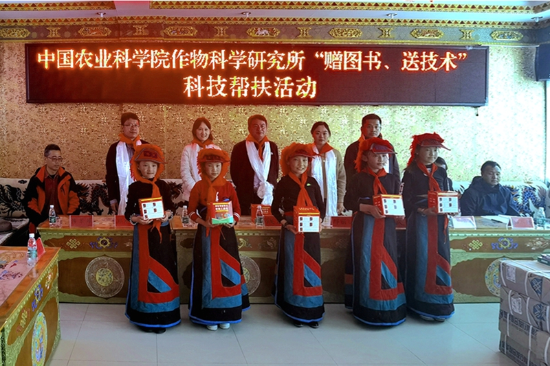 钱前一行在山南市、拉萨市、日喀则市针对当地青稞良种繁育基地、定点扶助的扶贫带贫企业和合作社等进行了实地走访和深入了解,重点调研了青稞的良种繁育、生产、加工和技术需求情况,现场观摩了青稞新品系的田间表现,并建议进一步推广活秆成熟的粮草双高青稞新品系,提升秸秆饲用品质,以及加大冬青稞育种和推广力度,实现冬春农田生态保护同时提高作物复种指数。考察调研了阿里地区革吉县蔬菜种植基地、牦牛产业基地及牦牛饲草种植基地等扶贫产业情况,以及前期对革吉县赠图书、送技术等系列举措的帮扶成效,并向该县种植、养殖科技人员和四乡一镇中心小学孩子们捐赠了价值4.0万元的图书。