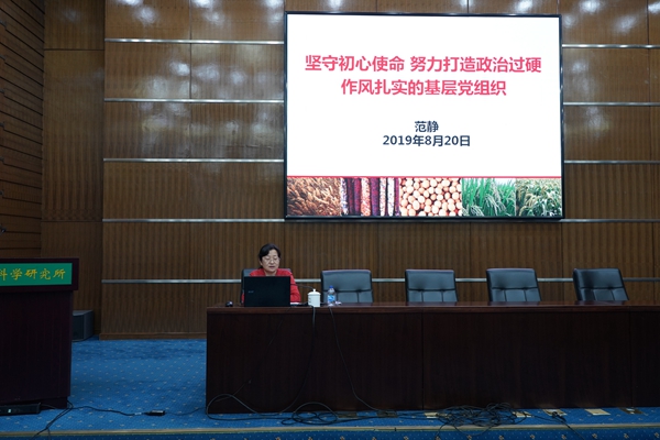 根据中央和部院党组 “不忘初心、牢记使命”主题教育要求及所党委工作部署,8月20日,作科所开展领导干部讲专题党课活动。在前期主题教育学习和调研的基础上,所长刘春明、党委书记范静分别以“不忘初心、牢记使命,做好新时期作物科学人才培养工作”、“坚守初心使命 努力打造政治过硬作风扎实的基层党组织”为主题作了党课报告。院主题教育第十指导组成员程高祥处长出席了会议,会议由党委办公室主任杨建仓主持。