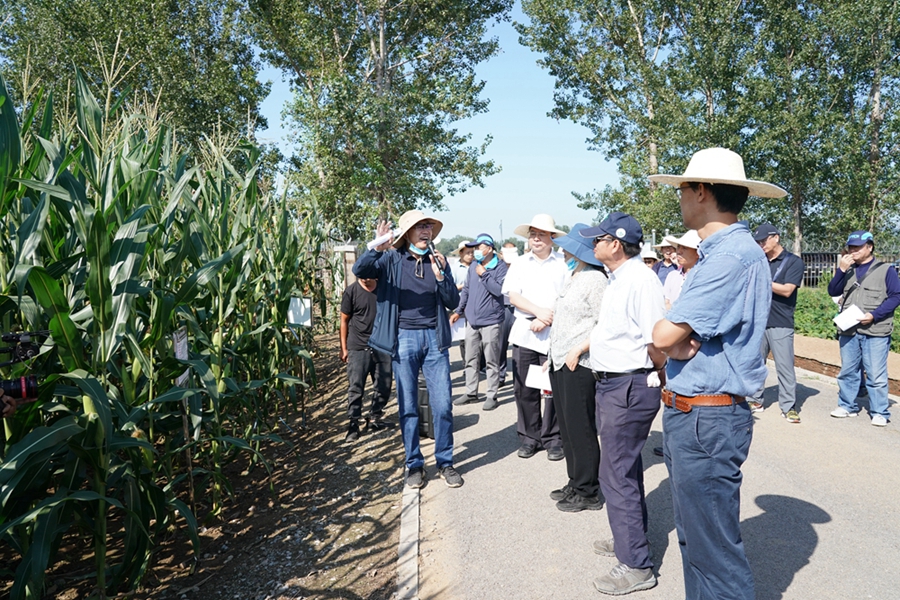 顺义与昌平试验基地本年度内完成了千余份水稻、玉米、谷子等种质资源的精准鉴定,筛选出光温反应迟钝、抗病、抗逆等优异种质,为育种家提供利用了上万份优异新种质。参会人员查看了玉米粗缩病抗性种质创制新技术、RBSBV跨多宿主灵敏检测技术展示;观摩了中单111、中单685等在抗倒耐密、易机收方面表现突出的玉米新品种,2020年度通过国审的高产抗病、优质水稻新品种京粳4号、5号,以及高产稳产、优质、抗病抗倒、广适并适宜机械化作业的国审品种中黄301等20个大豆新品种;并现场品鉴了鲜食玉米中甜401,得到与会专家的一致好评。