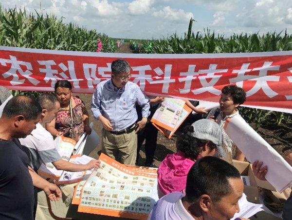黑龙江省桦川县是中国农业科学院“科技扶贫”示范县,由作物科学研究所负责牵头实施。按照所党委安排,作科所作物栽培与耕作中心负责承担科技扶贫项目工作任务。按照院党组“脱贫攻坚主战场在哪里,中国农科院的专家团队就在哪里”的指示精神,结合“支部建在创新团队上”,作物栽培与生理创新团队党支部与桦川县苏家店镇新胜村党支部开展了共建活动,积极探索党建和科研、扶贫相互促进的工作模式。创新团队的科技人员中党员占多数,村党支部的成员是农户中的先进代表,两个党支部的合作有效地推动了“科技扶贫”工作的进展。项目开展之初,通过两个党支部的对接,村支部成员提供当地生产条件并提出技术需求,创新团队支部组织各方资源提供技术支持,共同完成了科技扶贫的技术方案。项目实施期间,村支部党员身先士卒协调示范基地,组织人员配合实施,创新团队党员以身作则亲力亲为实施各项技术、进行技术培训。共同的目标、共同的身份把两个党支部联系在一起,党建工作和科技扶贫都开展的有声有色,也带动了周边群众对这项工作的重视和认可,充分发挥了党支部战斗堡垒作用和党员的先锋模范作用。