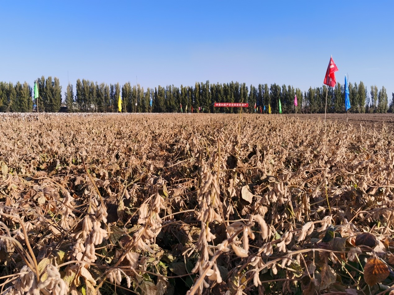 中黄35系中国农业科学院作物科学研究所大豆高产优质育种创新研究组选育的超高产高油大豆新品种。该品种先后通过国家黄淮海北片和北方春大豆晚熟组以及内蒙古和吉林省审定,适合京、津、冀、鲁、晋、陕、甘、宁、辽、吉、蒙和新等12个省市推广种植,适宜区域为35°N~45°N,覆盖北方春大豆和黄淮海夏大豆两大生态区。2009~2020年连续五年在新疆地区创亩产超400公斤的全国大豆高产典型,其中2012年创亩产421.37公斤的全国大豆超高产记录。专家组一致认为,中黄35大豆品种在覆膜滴灌水肥同步栽培条件下再次创造超高产典型,显示了该品种具有很大增产潜力,建议在适宜地区扩大推广应用。该项目是在中国农业科学院创新工程“大豆藏粮于技”重大科技项目的支持下取得的又一创新成果,为我国大豆增产提供科技支撑和新途径。