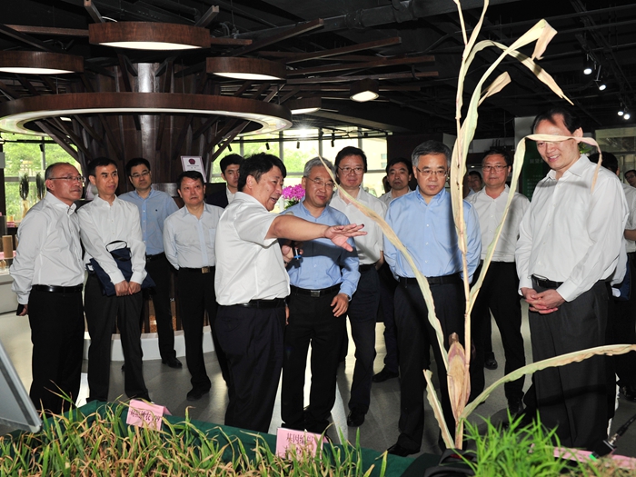 5月26日,习近平总书记致中国农业科学院建院60周年贺信发表一周年之际,中共中央政治局委员、国务院副总理胡春华到中国农业科学院调研农业科技工作期间,胡春华先后来到中国农科院作物科学研究所国家作物种质库和重大科学工程楼,了解农作物种质资源安全保存与有效利用情况、现代作物育种技术研发与应用进展,并与科研人员讨论交流。作科所所长刘春明、党委书记孙好勤参加了接见。