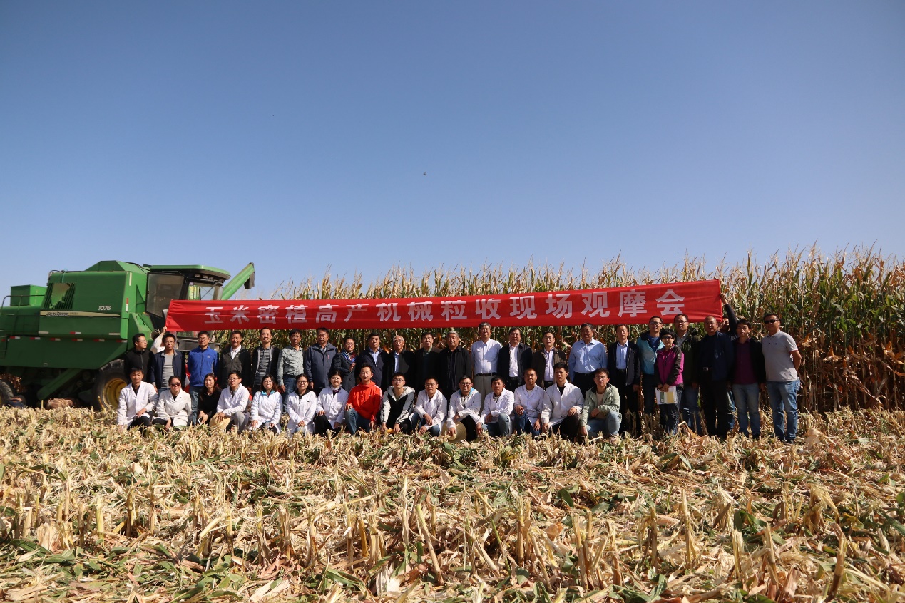 参会人员现场观摩了位于新疆建设兵团第六师奇台总场示范田的4类16项试验研究,测产结果显示,再次重现亩产超1500公斤的高产纪录。此块试验基地面积为200亩,由作物栽培与生理创新团队经过12年的建设和投入,己连续六次创造全国玉米高产纪录,最高亩产1517.11公斤。观摩会上,绿色发展技术集成模式研究与示范技术总师李少昆研究员介绍,示范田通过选用耐密高产品种,构建高质量群体,实施密植高产全程机械化栽培和水肥一体化技术,充分挖掘良种、良法与光温水肥资源的增产潜力,粒收观摩田亩产达到1100公斤,籽粒成熟度高、含水率适宜粒收。机械粒收现场演示,收获籽粒破碎率、杂质率及损失率均处于较低水平,观摩农户对示范田的收获密度、玉米产量及粒收质量赞不绝口。今年,试验点周边10万亩示范生产地亩产达到1000公斤水平,全部进行机械粒收、烘干收储和秸秆还田。
