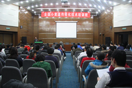为了提高小麦遗传转化效率,加快小麦新品种培育和小麦功能基因组学研究的进程,由作物科学研究所举办的“全国小麦遗传转化培训班”于2011年1月6日至1月8日在北京举行。来自中国科学院遗传发育所、中国科学院成都生物所、中国农业大学、南京农业大学、华中农业大学、山东农业大学、西北农林科技大学、江苏农科院、河北省农科院、河南省农科院、北京未名凯拓农业生物技术公司等32个单位的61名学员参加了此次培训。培训班邀请4位专家分别做了小麦基因枪转化技术、小麦农杆菌转化技术、小麦转基因植株分子检测技术和转基因植物安全性评价专题报告;在有关专家的指导下学员们在实验室进行了小麦幼胚培养、小麦成熟胚培养、转基因小麦PCR检测、小麦幼胚基因枪转化和农杆菌转化等具体实验操作。培训班得到了作物科学研究所领导的高度重视,作物科学研究所副所长王述明研究员、科研处处长李新海研究员、相关课题首席科学家黎浴、马有志研究员等领导、专家参加了培训班开幕式并致辞。学员们普遍反映这次培训班非常及时,收获很大,对加快我国小麦遗传转化技术的普及有极大的促进作用。(杜丽璞,叶兴国)
