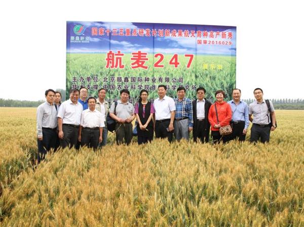 2017年6月6日,由中国农科院作物科学研究所培育、北京顺鑫国际种业公司获独家授权的小麦新品种航麦247现场观摩会在北京市顺义区木林镇举行。科技部农村技术开发中心农业高技术处项目主管专员魏珣博士、农业部全国农技推广中心国家小麦区试负责人郭利磊、中国农科院成果转化局局长王述民、北京市种子管理站副站长福德平、中国农科院作物科学研究所所长刘春明、副所长刘录祥、北京顺鑫国际种业公司总经理段春仲,以及来自北京市、天津市、河北省等地的领导、育种专家、栽培专家、种田大户和经销商代表等100余人参加了此次现场观摩。