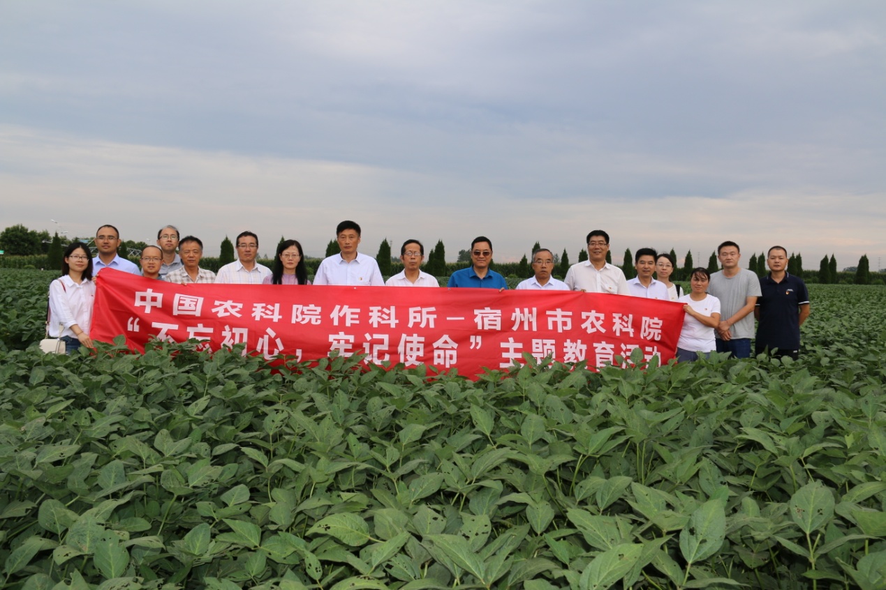 座谈会后,大家参观了宿州市农科院东区和北区试验基地,实地考察了黄淮海大豆新品种的田间表现和绿色免耕覆秸栽培技术的应用效果,针对宿州市大豆产业发展和双方合作领域进行了深入交流。通过双方支部共建主题党日活动,在党建促合作、合作促科研,促进大豆科研协同创新、科研成果在主产区推广转化,激发党员干部面向现代农业主战场干事创业的精气神发挥了积极作用。