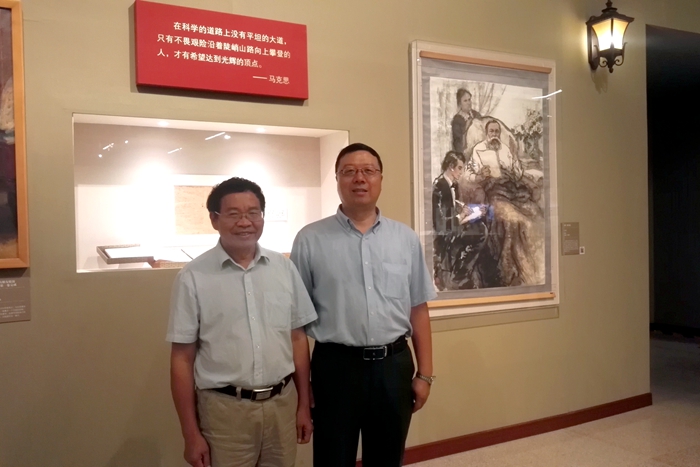在展厅中,大家凝神观看展品,热切交流感想。通过观看展览,了解了马克思的生平和马克思主义中国化的光辉历程,汲取了真理的力量,也更加深入地理解了习近平总书记在纪念马克思诞辰200周年大会上的重要讲话精神。马克思曾经说过,“在科学上没有平坦的大道,只有不畏劳苦沿着陡峭山路攀登的人,才有希望达到光辉的顶点。”这种不畏艰难险阻、为追求真理而勇攀思想高峰的精神,值得我们永远学习和敬仰!