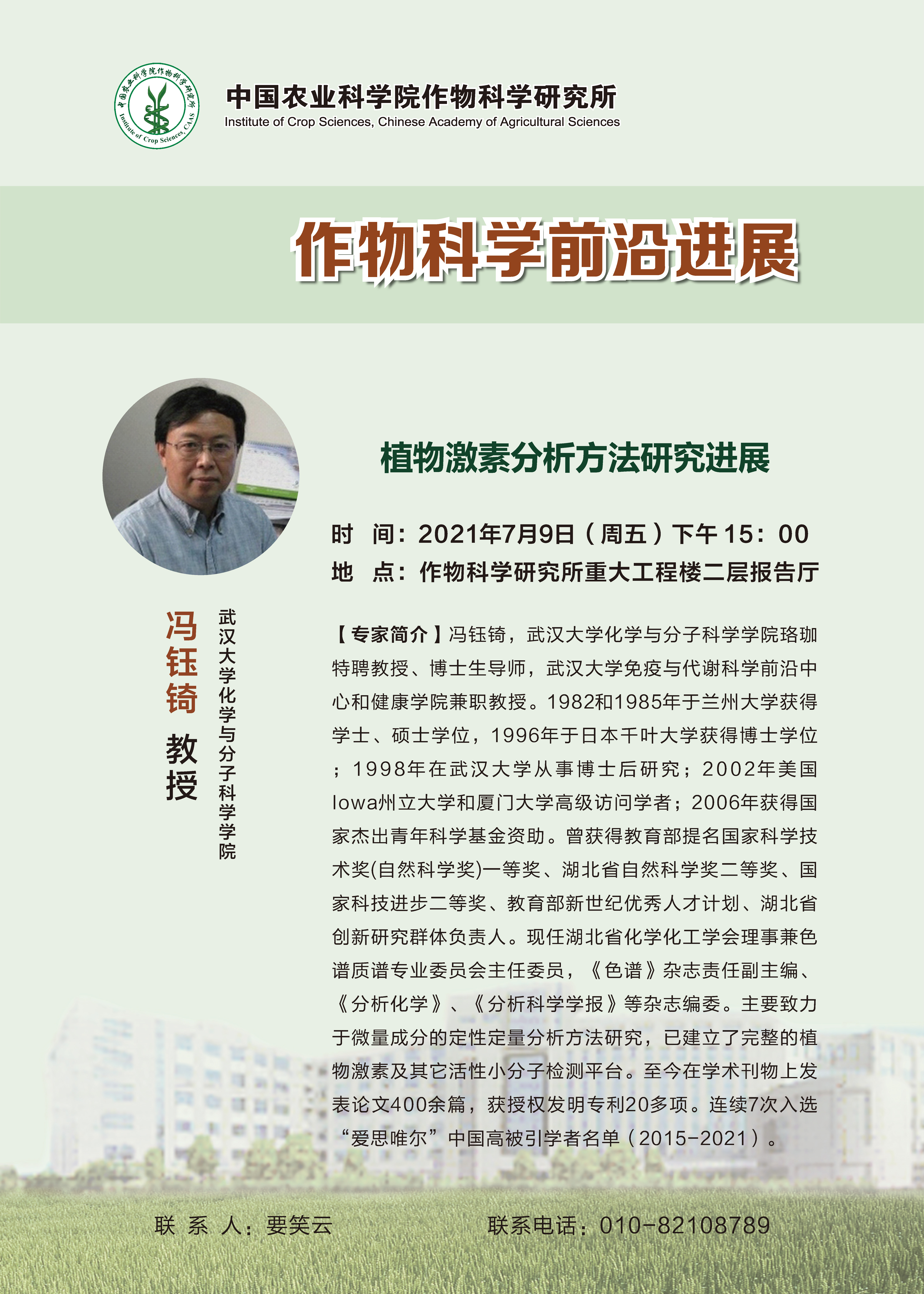 【作物科学前沿进展】冯钰锜教授 植物激素分析方法研究进展