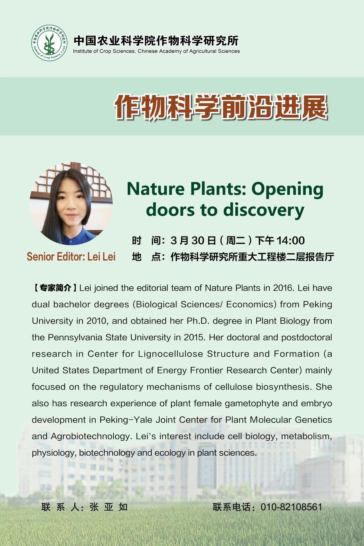 【作物科学前沿进展】Lei Lei,Nature Plants: Opening doors to discovery(3月30日)
