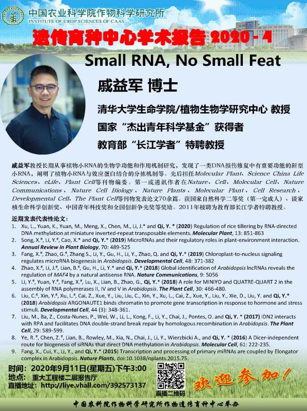朱冰 博士,Epigenetics: from inheritance to memory(育种中心学术报告2020-3)