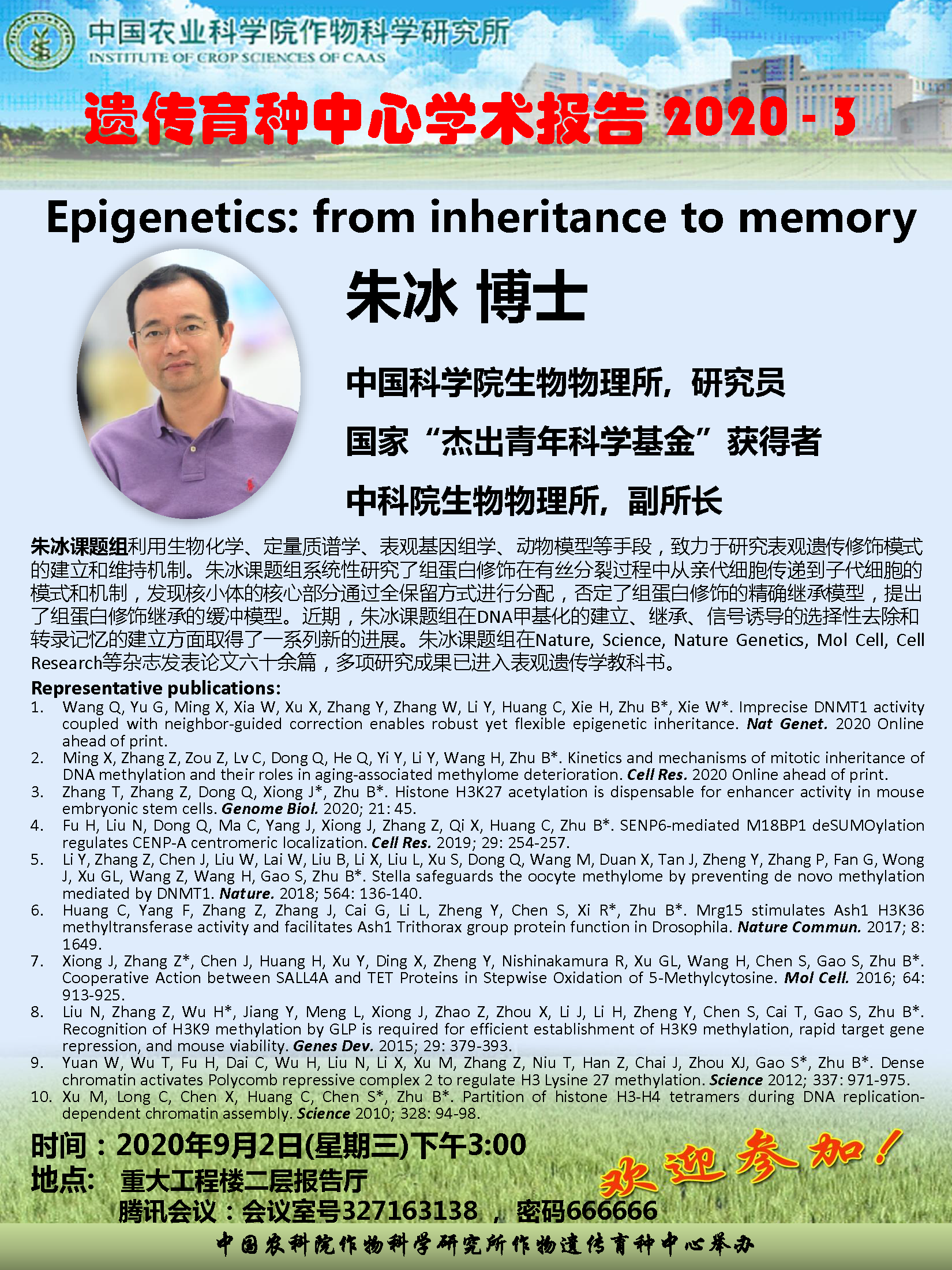 朱冰 博士,Epigenetics: from inheritance to memory(育种中心学术报告2020-3)