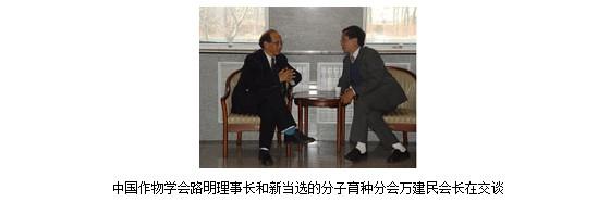 大会选举产生了第一届“作物分子育种分会”的正副会长和秘书长。中国农科院作物科学研究所万建民教授当选为会长,中国科学院遗传发育研究所张爱民教授、中国农业大学孙其信教授、中国农科院生物技术研究所郭三堆研究员、华中农业大学郑用琏教授、中国农科院棉花研究所喻树迅研究员、中国农科院油料研究所王汉中研究员、中国水稻研究所程式华研究员当选为副会长,中国农科院作物科学研究所马有志研究员当选为秘书长,中国农科院作物科学研究所李新海研究员、中国农业大学王国英教授、四川农业大学李平教授、海南省热带农业资源开发利用研究所方宣钧研究员当选为副秘书长。中国作物学会分子育种分会挂靠在中国农科院作物科学研究所。
