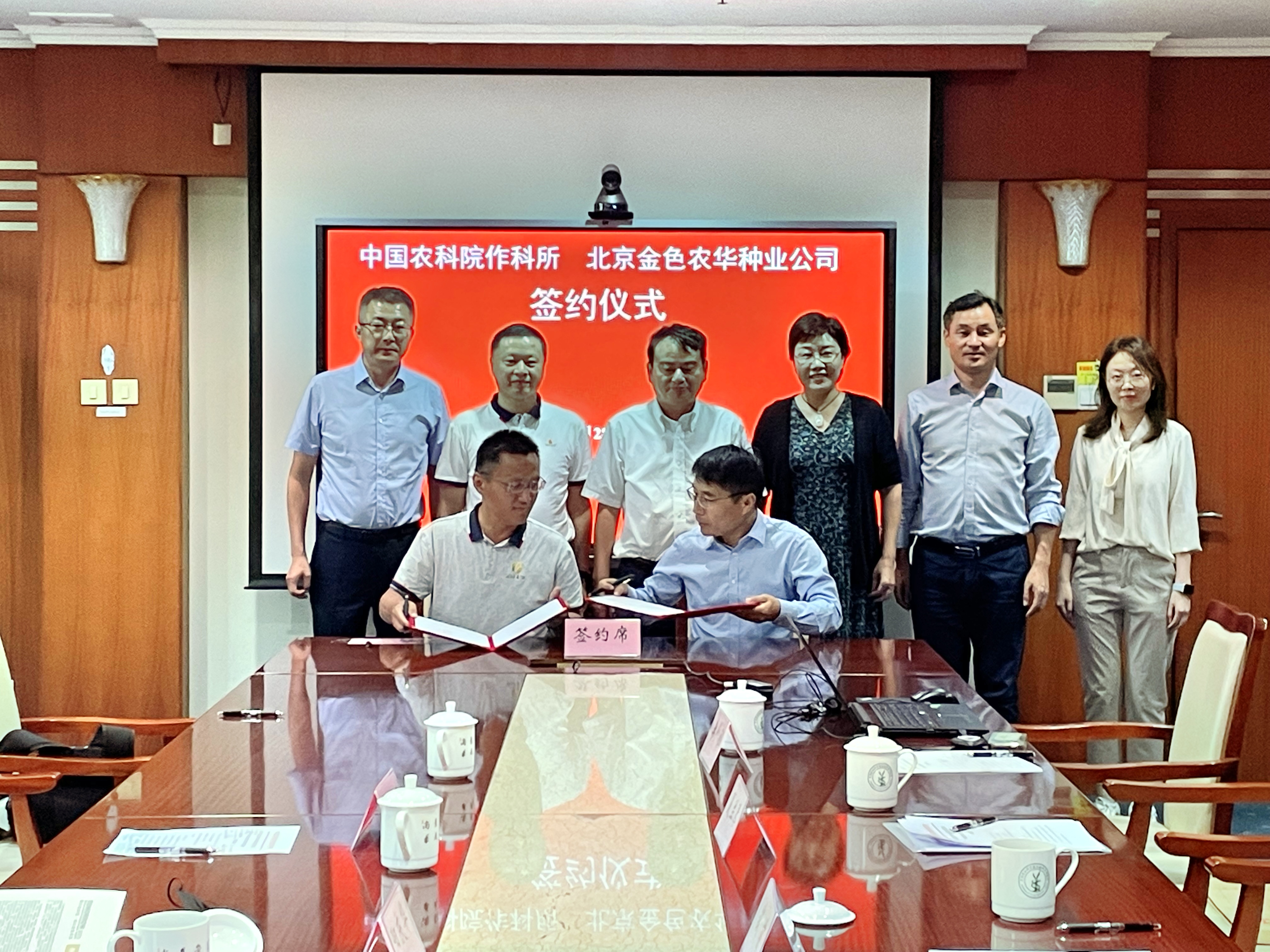 作科所与金色农华种业公司签署生物育种合作协议近日,中国农业科学院作物科学研究所与北京金色农华种业科技股份有限公司(以下简称“金色农华种业”)项目合作签约仪式在作科所举行。通过此次科企合作,双方将充分发挥各自科研、技术和市场优势,联合开展水稻基因...2022.10.09