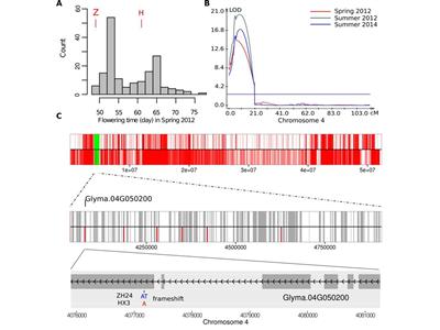 Wild soybean is a typical short-day plant that begins flowering when the days are shorter than its critical photoperiod. Soybean was domesticated in the temperate region of East Asia at the relatively high latitude, and the breeding and release of soybean varieties have historically centered on mid- and high-latitude temperate regions. Low-latitude areas with tropical and sub-tropical climates were previously considered unsuitable for soybean production because most temperate soybean varieties exhibited precocious flowering and early maturity and suffered from low yields.